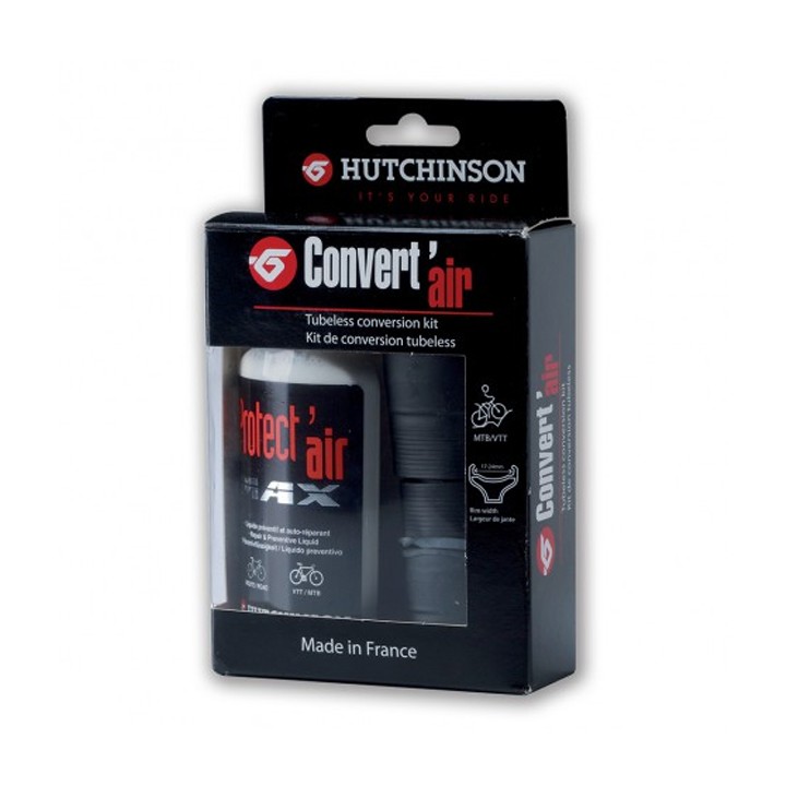 Kit di conversione Tubeless disponibile in 26", 27,5" e 29" pollici. Comprende: - 2 TL rim tapes -1 Protect'Air Max 120ml - 2 valvole - 2 utensili Istallazione facile. Comfort eccezionale (pressione raccomandata ~2 bar massimo). Motricità migliorata (migliore deformazione del pneumatico). Aderenza ottimale nelle curve Soppressione delle forature per pizzico (nessuna camera d'aria) Rischio di foratura ridotto grazie al liquido preventivo Protect'Air Max