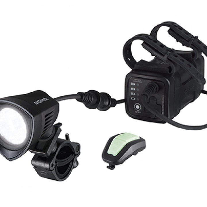 Trasformate la notte in giorno utilizzando il fanale Power più potente prodotto da SIGMA. I 2000 lumen generati dai 3 CREE LED e il pacco batteria ultra potente rendono il BUSTER 2000 un fantastico fanale per viaggi e corse in notturna. Ci sono due tipi di fanale Power: uno si può montare sul manubrio e l’altro sul casco (HL).