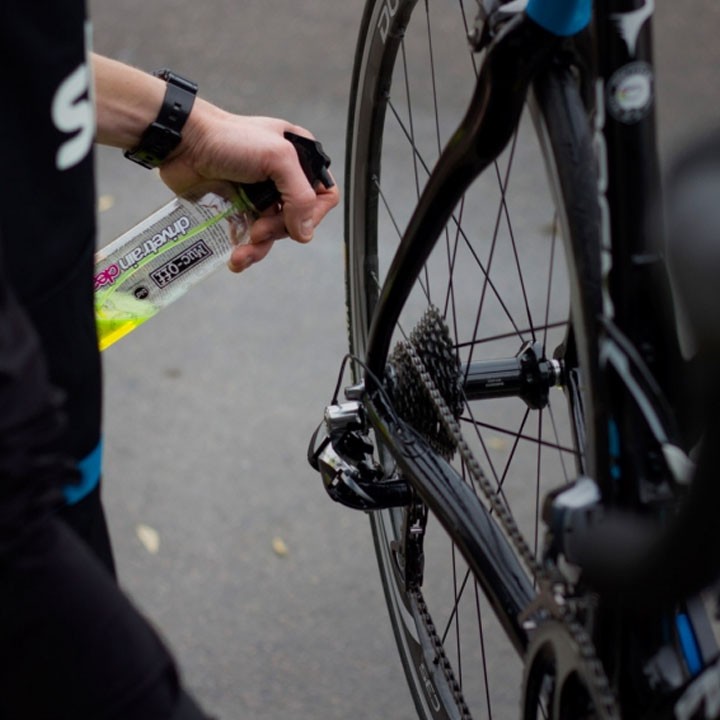 Spruzzare direttamente sulla catena; pulire con pennello; risciacquare oppure utilizzare puliscicatena con sgrassatore concentrato