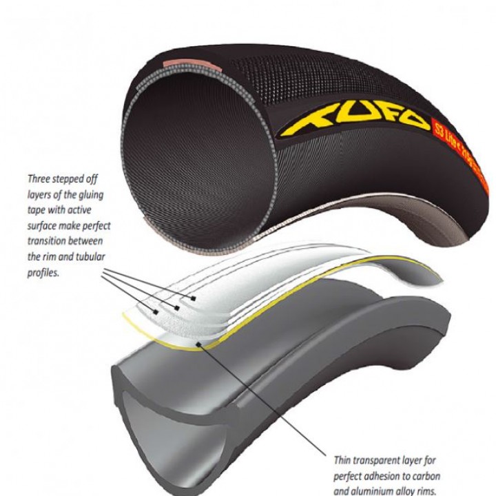Abbiamo creato uno speciale nastro adesivo su entrambi i lati per incollare i nostri tubolari su ogni cerchio tubolare. Questo nastro è molto diverso da prodotti simili attualmente in vendita. Con l’utilizzo del nostro nastro, il montaggio è veloce, sicuro e molto pulito. Subito dopo il montaggio, le ruote sono pronte per l’utilizzo senza bisogno di attendere che la colla si asciughi. Nessun tempo di attesa per far asciugare la colla gli strati preicollati del nastro garantiscono il perfetto incollaggio del tubulare al cerchio, subito dopo aver percorso pochi metri. Nessuna sbavatura di colla sul cerchio, sul tubolare e sulle mani, nessun vapore tossico. La pellicola rossa rimovibile agevola il centraggio del tubolare sul cerchio.